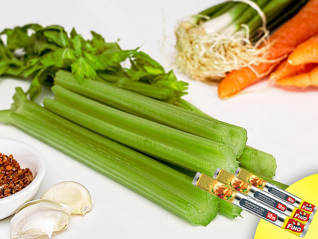 Îți place să gătești supe și salate de vară? Cu siguranță țelina nu trebuie să îți lipsească din bucătărie, pentur că dă o savoare deosebită mâncărurilor și are numeroase beneficii pentru sănătate. Împăturește-o în folie de aluminiu FINO, pentru a o păstra proaspătă mai mult timp. Simplu de utilizat, aceasta poate fi ajustată cu ușurință în funcție de nevoile tale, având un termen de valabilitate nelimitat.