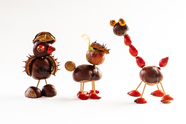 Unul dintre jocurile preferate ale copilăriei – transformarea castanelor în personaje vesele – rămâne actual și astăzi. Cu ajutorul scobitorilor, plastilinei sau a lipiciului, cei mici pot construi căluți, omuleți sau mici figurine care le stimulează imaginația și dexteritatea.