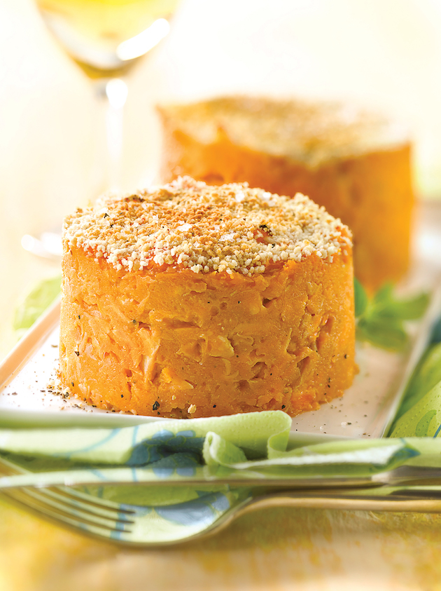 Așezi pe farfurii, în 4 inele speciale de metal unse cu puțin ulei, cantități egale de piure, apăsând cu o lingură. Presari deasupra parmezan ras, scoți inelele și servești.