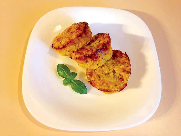 Pui compoziție în formele de brioșe unse și tapetate (fără hârtie de copt) și le introduci în cuptorul încins la 160ºC până când devin aurii (20-25 minute). Din această compoziție, poți forma chiftele mai mari, le așezi pe o tavă cu hârtie de copt și le coci până se rumenesc.