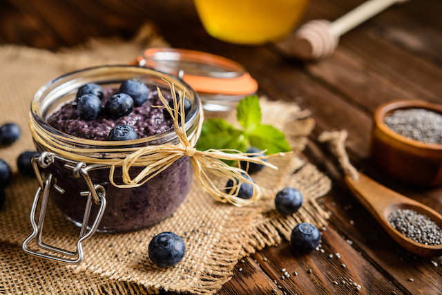 Pui semințele de chia la hidratat peste noapte în lapte.