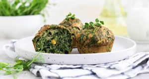 Ingrediente 400 g spanac proaspăt deja curățat 3 ouă 200 g iaurt gras 100 g cașcaval ras 1 legătură ceapă verde 1 lingură unt 1 pliculeț praf de copt 150 g făină 1 lingură boabe de porumb sare piper Mod ...