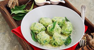 Ingrediente 1 cartof mediu fiert 200 g brânză de vaci 3 ouă 200 g griș 400 g baby spanac proaspăt 1 ceapă mică sare unt topit și parmezan ras pentru servit Mod de preparare Speli spanacul și îl fierbi în ...