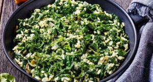 Spanac cu orez. Aceasta este o rețetă simplu de pregătit, ușoară și reconfortantă. O poți folosi ca și garnitură, dar la fel de bine merge și ca fel principal. Ingrediente 250 g spanac curățat 1 legătură ceapă verde ½ ceapă ...