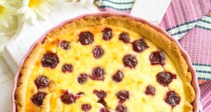 Ingrediente PENTRU BLAT 250 g făină 100 g unt 2 linguri apă rece 1 ou PENTRU UMPLUTURĂ 500 g brânză de vaci 4 linguri zahăr pudră 1 linguriţă esenţă de vanilie 4 ouă 300 g cireşe 1 lingură griş 1 ...