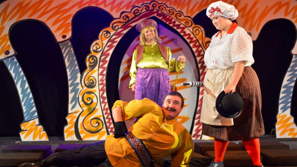 Am auzit cu toții povestea lui Aladin. Însă spectacolul „O mie și una de nopți – Lampa lui Aladin” propune o perspectivă nouă asupra faimoasei povești. Șeherezada și Șehreiar pictează, de-a lungul celor o mie și una de nopți, aventura lui Aladin, care nu mai este un hoț mărunt. Cât despre dorințe, accentul se mută de la numărul acestora, care devin infinite, la felul în care sunt folosite. În final, cel mai important lucru este ca binele să iasă învingător.