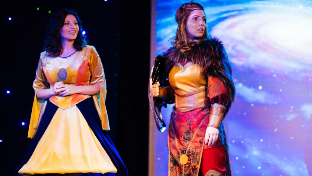 Oamenii au studiat cerul și astrele de foarte multă vreme. Dar astrele se studiază, oare, între ele? Marele Soare și frumoasa Lună se cunosc cu celelalte planete? Ce personalitate are o planetă și cum comunică între ele? Veniți alături de aceste personaje fantastice de dincolo de nori să vedeți un spectacol deosebit, care le va trezi interesul celor mici pentru lumea vastă cuprinsă în bolta cerească.