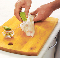 Speli fileurile de cod, le usuci cu prosoape absorbante, le condimentezi cu puțină sare și le stropești cu zeamă de lămâie. Le lași să se odihnească 15 minute.