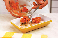 Așezi fileurile într-un vas termorezistent uns cu puțin unt, iar deasupra lor așezi câte o lingură din compoziția de roșii. Le introduci în cuptorul încins la 180° C pentru 15-20 de minute.