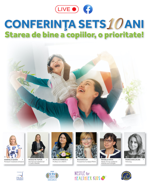 Cu ocazia împlinirii a 10 ani de la lansarea mișcării naționale „Și eu trăiesc sănătos!” – SETS, Fundația PRAIS, alături de partenerii săi fondatori: Universitatea Națională de Educație Fizică și Sport București – UNEFS și Nestlé for Healthier Kids, a organizat astăzi conferința online cu tema „Starea de bine a școlarilor, o prioritate!” la care s-au înscris peste 1.300 de cadre didactice, părinți, public general. Participanții au beneficiat de prezentările unor experți de marcă în nutriție, mișcare și sport, psihologie, pediatrie – somnologie și activități extracurriculare recreaționale.