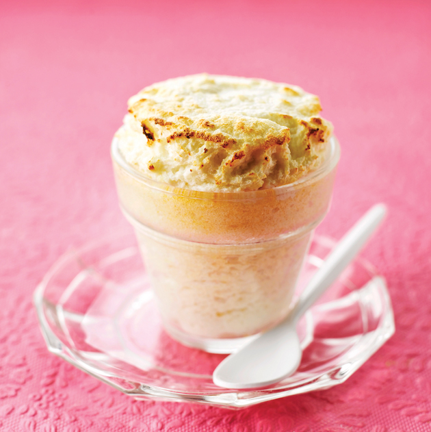 Bați albușurile spumă tare, adaugi restul de zahăr și bați până se topește zahărul și devine o bezea lucioasă. Le încorporezi în compoziția de nucă de cocos împreună cu făina, amestecând ușor, de jos în sus. Împarți compoziția în vase individuale și netezești uniform. Le introduci în cuptorul încins la 170ºC pentru 30 de minute. Trebuie să crească frumos și să rumenească ușor.