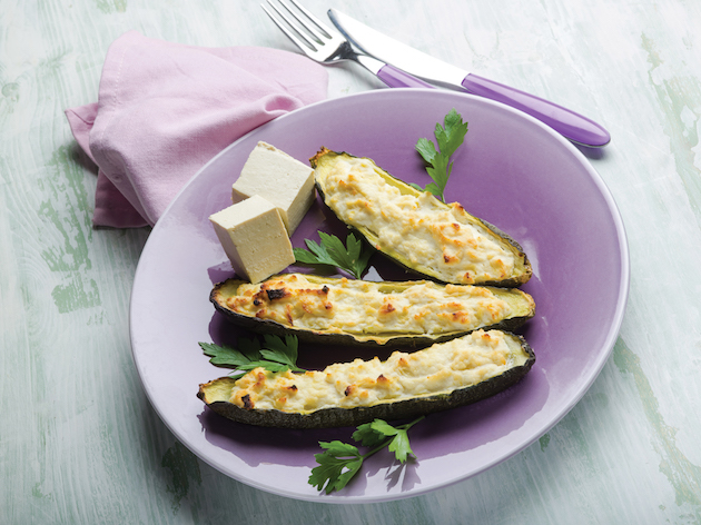 Omogenizezi compoziția, umpli jumătățile de dovlecei, le așezi într-un vas termorezistent, pui puțină apă și îi introduci în cuptorul încins pentru circa 40 de minute. Poți înlocui cașul cu orez integral, bine spălat și fiert în prealabil.