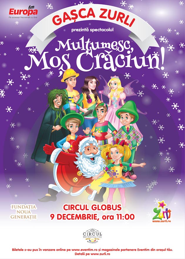 Gașca Zurli prezintă , în premieră, spectacolul “Mulțumesc, Moș Crăciun!”, pe data de 9 decembrie, de la ora 11:00, la Circul Globus din București.