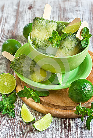 Speli 2 lime, apoi dai coaja pe răzătoare și storci sucul. Pui miezul unui avodaco foarte bine copt într-un blender, adaugi 100 ml lapte de cocos, 5 linguri de miere, zeama și coaja de la lime și 3-4 frunze de mentă. Mixezi totul, pui compoziția în forme  și o dai la rece.