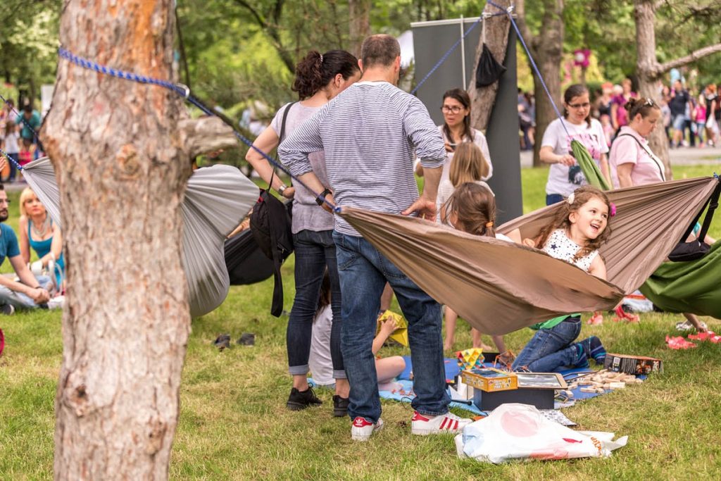 Prietenii de la PlaYouth aduc jocuri cu forme geometrice, origami, jocuri artistice, in care copiii invata cum sa deseneze cu baloane de sapun si trafaleti, si hamace perfecte de tolanit in ele dupa o sesiune de joaca.