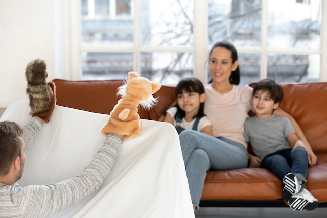 Puteți organiza și un „teatru de plușuri”, în care fiecare personaj