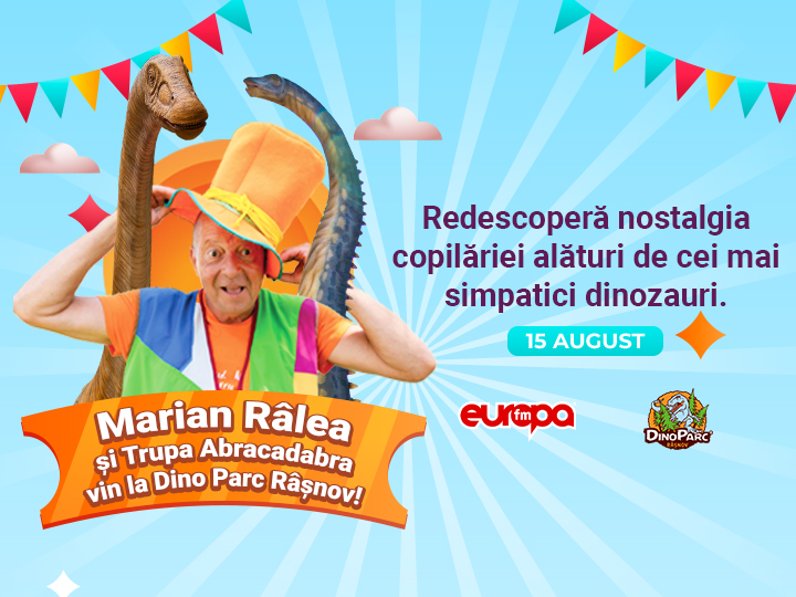 Explozie de veselie la Râșnov în august! Marian Râlea, alături de Trupa Abracadabra, și Zurli concertează la Dino Parc Râșnov, pe 15 și 24 august 2024, de la ora 13:00, aducând zâmbete pe fețele celor mici și mari, în două spectacole pline de energie și culoare. Cele două evenimente sunt ocazia perfectă pentru a vizita Dino Parc Râșnov, care anul acesta a fost inclus, în premieră, în clasamentul parcurilor de distracție din Europa. Potrivit topului realizat de site-ul specializat europeanbestdestinations.com, Dino Parc Râșnov este singurul parc de distracții din România prezent în top, ocupând locul 3, după destinații consacrate, precum Disneyland și Europa-park.