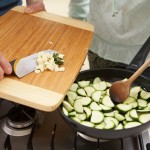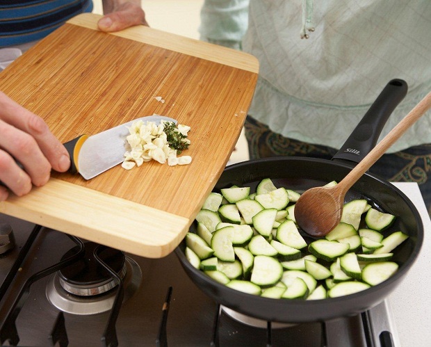 Tai dovleceii în felii şi le pui într-o tigaie cu 2 linguri de ulei. Adaugi usturoiul tocat mărunt, frunzele de cimbru şi laşi 2-3 minute, după care dai să se răcească.