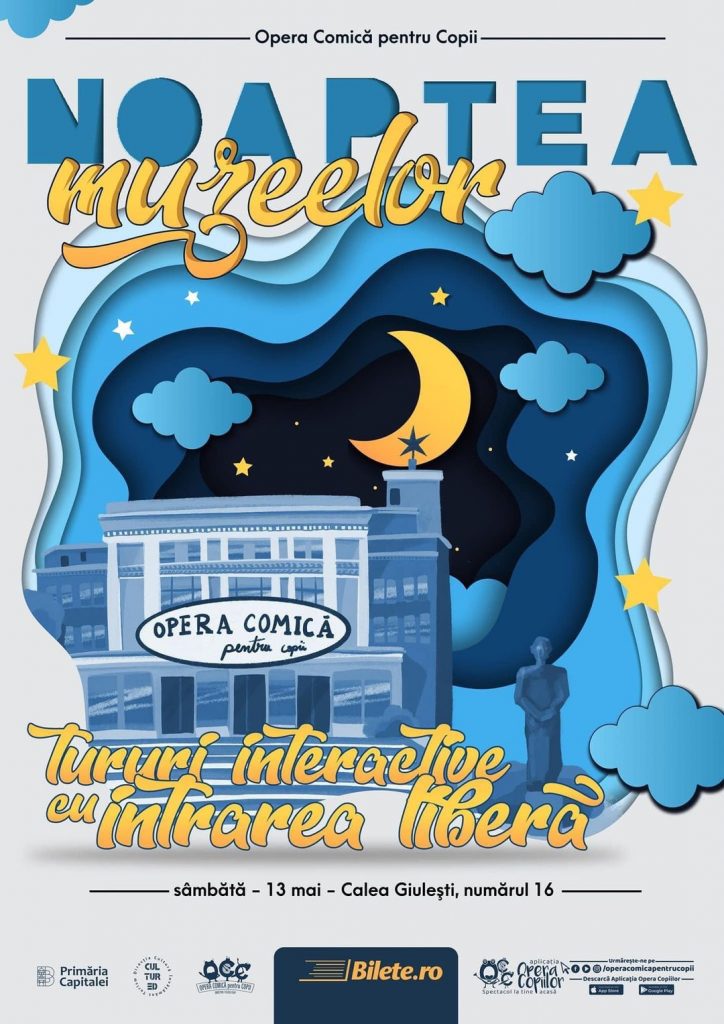 Pentru al optulea an consecutiv, Opera Comică pentru Copii se alătură inițiativei globale „Noaptea Muzeelor” și pregătește experiențe unice și memorabile pentru spectatorii săi, indiferent de vârstă! Sâmbăta viitoare, pe 13 mai, între orele 20:00 și 24:00, toți cei care trec pragul Operei Comice pentru Copii (Calea Giulești nr. 16), pornesc la fiecare sfert de oră în tururi ghidate prin clădire. Traseul este presărat cu momente muzicale și coregrafice susținute de artiștii instituției. Participarea în tur este gratuită, iar atracțiile din Grădina OCC vor avea un program prelungit cu această ocazie, fiind disponibile publicului până la miezul nopții.