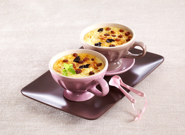 200 g orez; 500 ml lapte; 1 praf de sare; 2 linguri unt; 5 linguri zahăr pudră; 2 ouă; 1 plic zahăr vanilat; 250 g brânză de vaci; 100 g prune uscate; 80 g stafide