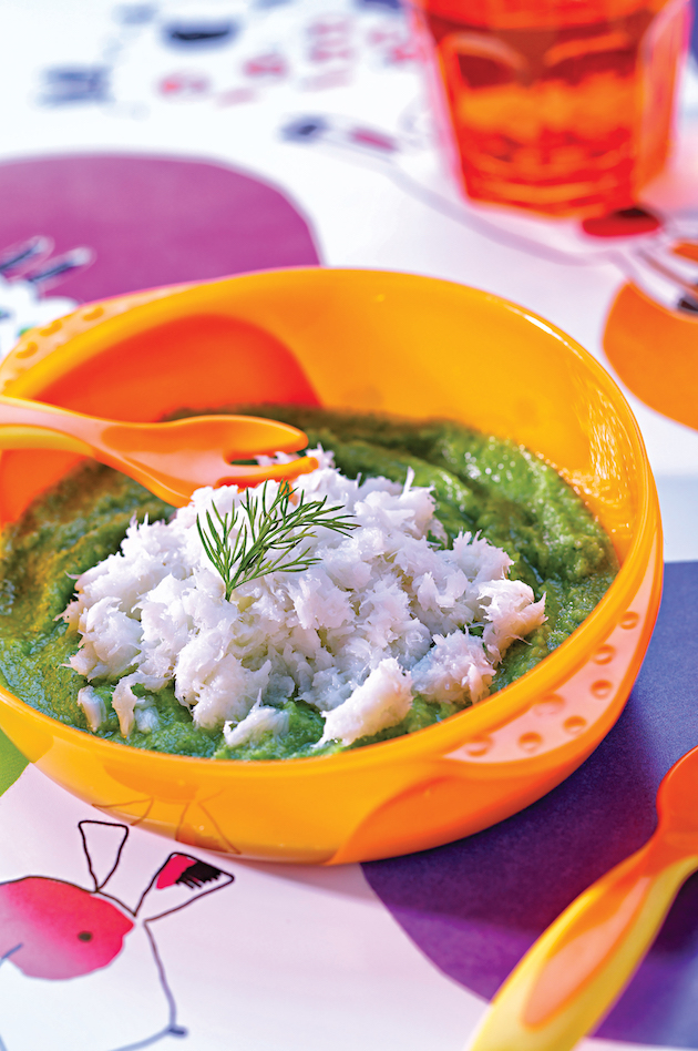 Speli frunzele de spanac și le pui într-o oală cu apă clocotită pentru 4-5 minute, după care le scoți în apă cu gheață pentru a păstra culoarea de verde intens. Le scurgi bine și le adaugi peste cartofi și țelină. Pui și mărarul, smântâna, uleiul și mixezi până obții un piure fin.