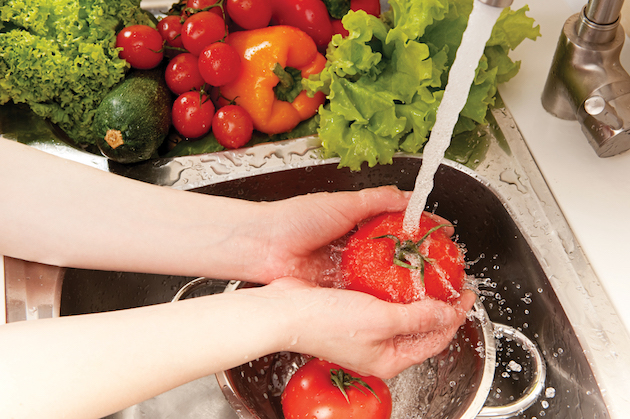 - Spălă și/sau decojește fructele și legumele! Spălarea abundentă a fructelor și legumelor convenționale poate elimina unele pesticide de pe suprafața cojii. Pentru o curățarea mai eficientă, se recomandă spălarea cu o soluție diluată de apă și oțet sau o soluție salină de 10%, adică o parte sare și nouă părți de apă.