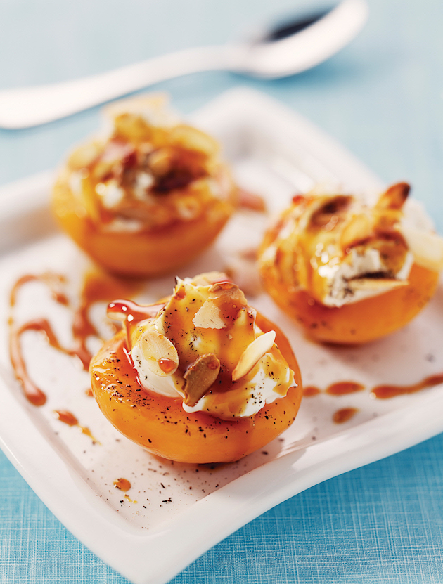 Așezi jumătățile de piersici pe o farfurie, le umpli cu cremă, presari migdale prăjite și le stropești cu miere sau sos caramel (opțional). Le servești imediat la întreaga familie, nu numai celui mic. Sunt delicioase.