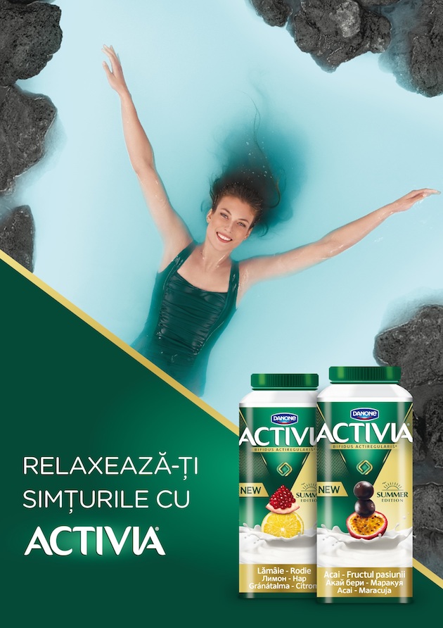 Lansarea noilor sortimente face parte din campania „Relaxează-ți simțurile și câștigă cu Activia”, ce se derulează în perioada 5 iunie – 27 august 2017. Încearcă orice iaurt Activia de băut, intră pe www.activia.ro și înscrie codul bonului fiscal care face dovada achiziționării a cel puțin unui produs Activia de băut. Poți câștiga în fiecare zi o apă termală mineralizată, săptămânal, o brățară smart sau marele premiu, un sejur relaxant pentru două persoane la Blue Lagoon, Islanda.