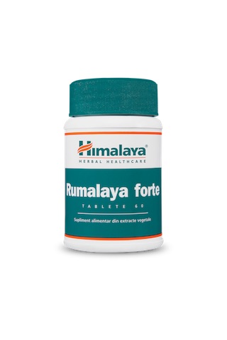 entru un maxim de eficienta, asociaza Rumalaya gel cu tabletele Rumalaya forte. Pentru ca nu are reactii adverse gastrointestinale sau cardiace, Rumalaya forte poate fi administrat in cure de lunga durata si reprezinta o buna alternativa la utilizarea antiinflamatoarelor nesteroidiene. Plantele din compozitia sa – Guggul, Tamaie Indiana, Lemn dulce, Galangal mare, Guduchi, Ghimbir – combat inflamatia si durerea, cresc mobilitatea articulatiilor si intarzie degradarea progresiva a cartilajului articular. Rumalaya forte este recomandat pentru afectiuni inflamatorii osteoarticulare si musculare reumatice sau post-traumatice, artroza (coxartroza, gonartroza, etc.), spondiloza, artrita, poliartrita reumatoida, guta, umar inghetat, inflamatii post-traumatice (fibrozite, bursite, capsulite, tendinite, sinovite).
