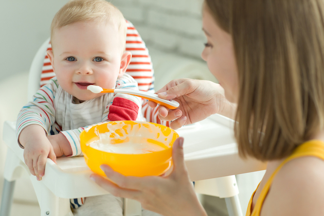 Un lactat, iaurt sau brânză dulce de vacă. De preferință, lactate destinate bebelușilor, pentru că au un conținut mai mic de proteine și sunt îmbogățite cu fier, acizi grași și vitamine.