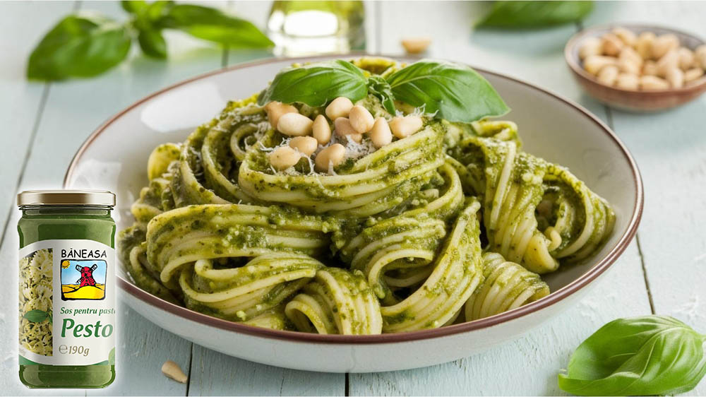 Spaghete cu sos pesto Băneasa, sănătoase și delicioase. În 15 minute ai pastele gata de a fi savurate cu toți cei dragi ție. Poftă bună!