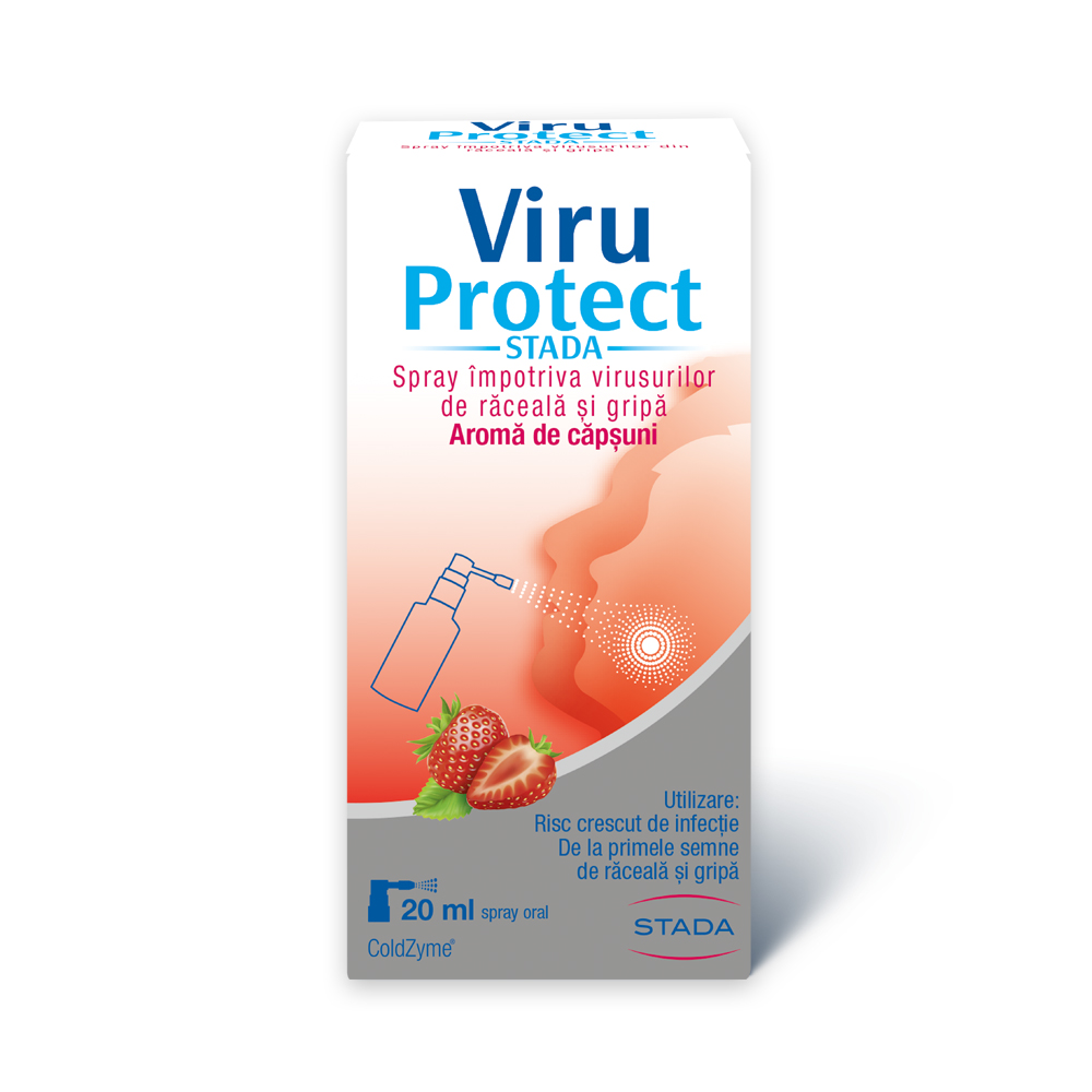ViruProtect STADA crează o barieră și protejează cavitatea bucală și gâtul, acolo unde se multiplică cele mai periculoase virusuri de răceală și gripă, împiedicând infectarea căilor respiratorii inferioare.