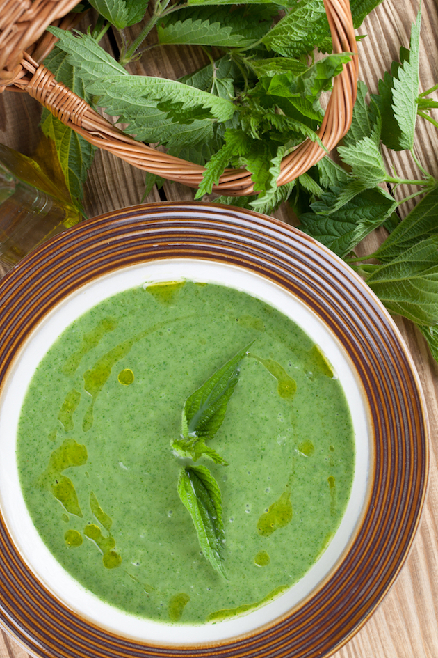 Pui urzicile curățate și spălate foarte bine peste legume, le acoperi cu apă și lași să fiarbă circa 15-20 de minute. Iei oala de pe foc, introduci blenderul și mixezi până obții o cremă fină. Pui smântâna, puțină sare și așezi oala din nou pe foc. Lași să dea în câteva clocote. Servești supa caldă, stropită cu puțin ulei de măsline.