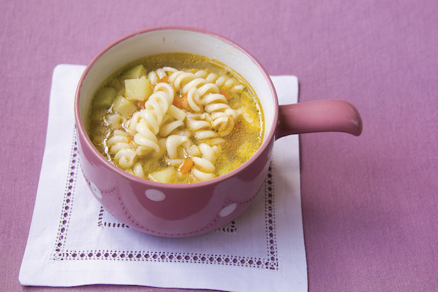 Dacă bebe nu agreează bucățelele, pui supa în blender și o mixezi.