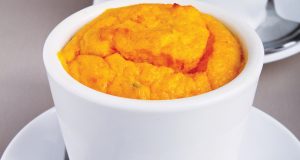 de la 8 luni Ingrediente 3 morcovi potriviţi 200 g brânză de vaci 100 ml lapte formulă 1 lingură unt nesărat 4 gălbenuşuri Mod de preparare Cureţi morcovii, îi tai rondele şi-i pui la fiert în apă plată. Când sunt ...