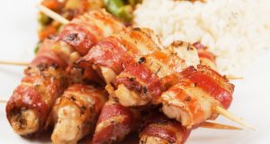 Ingrediente 30 felii subțiri bacon 2 bucăți piept de pui mari 200 g mozzarella 100 g miere sucul de la o jumătate de lămâie 1 lingură muștar 1 linguriță cimbru uscat 1 linguriță boia iute sare Mod de preparare Tai ...