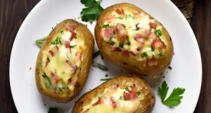 Ingrediente 3 cartofi albi mai mărișori 200 g pancetta 100 g unt 100 ml lapte 150 g brânză emmentaler 4 fire pătrunjel verde Mod de preparare Pui grătarul aragazului la mijloc și încingi cuptorul la 200°C. Speli cartofii, îi ștergi ...