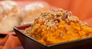 Ingrediente 300 g cartofi dulci; 300 g dovleac; 600 ml smântână dulce; 2 căței usturoi; 15 g unt; sare; 1 linguriță cimbru uscat; 1 lingură ulei Mod de preparare Într-o crăticioară, amesteci smântâna cu usturoiul pisat, un praf de sare ...