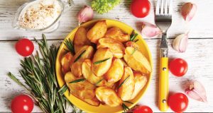 Ingrediente 1 kg cartofi noi potriviți ca mărime; 2 fire rozmarin proaspăt; 5 linguri ulei de măsline extravirgin; 1/2 lingură oțet de vin alb; sare Mod de preparare Speli cartofii foarte bine cu un burete și îi tai în patru ...