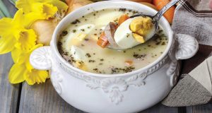 Ingrediente 2 pulpe de pui potrivite 2 morcovi potriviți 1 ceapă potrivită 1 bucată păstârnac 1 felie țelină mai mare 3 linguri ulei 300 g smântână grasă 3 gălbenușuri zeama de la o lămâie potrivită ½ legătură pătrunjel verde 1 ...