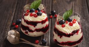 Ingrediente 250 g mascarpone 3 lingurițe cu vârf zahăr pudră 200 ml frișcă 1 linguriță extract de vanilie 400 g fructe de pădure (afine și coacăze) 150 ml apă 2 linguri zahăr tos 2 lingurițe rase de amidon Mod de ...