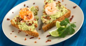Tartine cu guacamole și creveți. Se pregătesc repede și ușor și sunt și sănătoase. Delicioaseeee! Ingrediente 3 felii de pâine toast neagră sau integrală 2 avocado 1 ceapă medie zeama de la o lămâie mică 1 lingură ulei de măsline ...