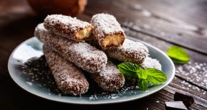 Ingrediente 24 pișcoturi de șampanie 200 g zahăr 150 g unt 300 ml lapte 2 lingurițe esenţă de rom 3 linguri cacao 200 g fulgi de cocos Mod de preparare Amesteci toate ingredientele într-o crăticioară, o așezi pe foc și ...