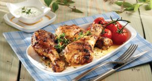 Ingrediente 6 ciocănele de pui; ½ ceapă mică; 1 cățel usturoi; ½ crenguță de rozmarin proaspăt; 2 crenguțe cimbru proaspăt; 50 ml ulei; 50 ml oțet de mere; 2 linguri sos de soia; 2 lingurițe boia; 2 lingurițe muștar; 2 ...