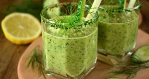Ingrediente 4 castraveți medii 1 bucată avocado 1 ardei mare verde 3 fire ceapă verde 150 ml supă de legume 2 linguriţe zeamă de lămâie 2 linguri smântână 2 frunze busuioc 4 fire mărar verde Mod de preparare Speli castraveții, ...