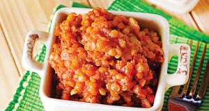 Ingrediente 300 g linte verde; 1 cutie mică roșii în bulion; 1 ceapă; 2 căței usturoi; 1/2 lămâie; 1 vârf de cuțit oregano uscat; 1 vârf de cuțit busuioc uscat; 1 lingură ulei; sare; piper Mod de preparare Speli lintea ...