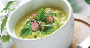 de la 8 luni/2 porții Ingrediente: 50 g orez 1 dovlecel 2 fire pătrunjel verde 200 ml supă de pui preparată în casă 2 lingurițe ulei de măsline Mod de preparare Speli orezul în mai multe ape, apoi îl adaugi în ...