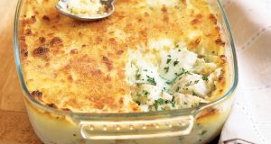 Ingrediente 500 g file de cod 500 ml lapte 500 g cartofi fierți 4 linguri ulei de măsline ½ legătură pătrunjel verde tocat 6 ouă sare 100 ml smântână Mod de preparare Pui fileurile de cod spălate bine într-o cratiță, ...