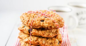 Ingrediente 1 cană făină 1 cană fulgi de ovăz 1 linguriță scorțișoară ½ linguriță sare 150 g unt la temperatura camerei 1 banană mare bine coaptă 2 ouă extract de vanilie 2 mere mici curățate și date pe răzătoarea mare ...