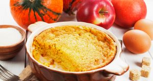 Ingrediente 400 g de dovleac decojit 100 g griș 2 linguri făină 2 mere mici sau unul mai mare 2 ouă 1 linguriță esență de vanilie 3 linguri zahăr brun 1 linguriță unt Metoda de preparare Tai dovleacul decojit cuburi ...